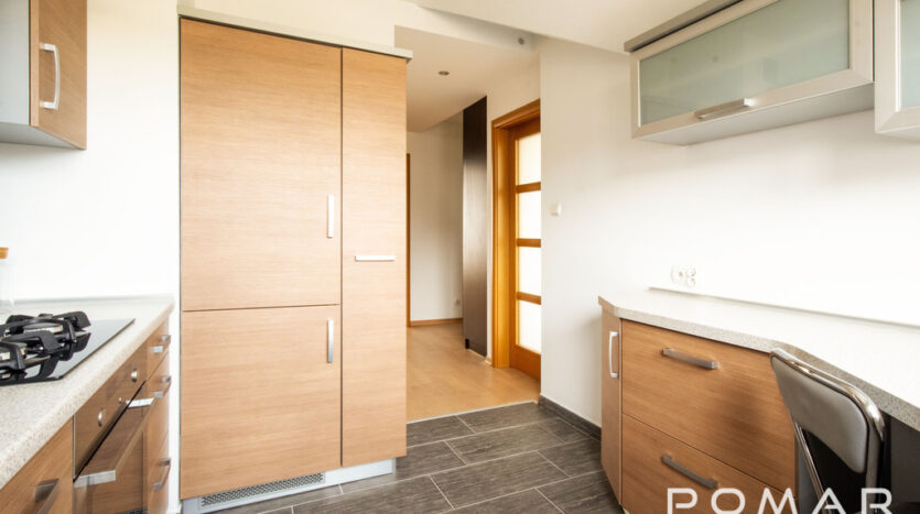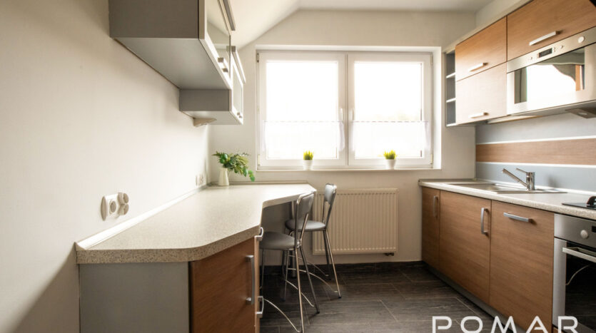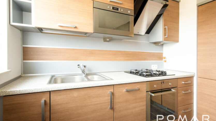 – Kuchnia – W zabudowie, wyposażona w sprzęt AGD (zmywarka, mikrofalówka, płyta, piekarnik). Miejsce na stół.