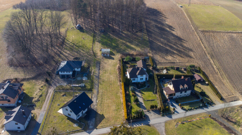 Działka znajduje się w spokojnej, zielonej okolicy, wśród nowych, zadbanych domów.