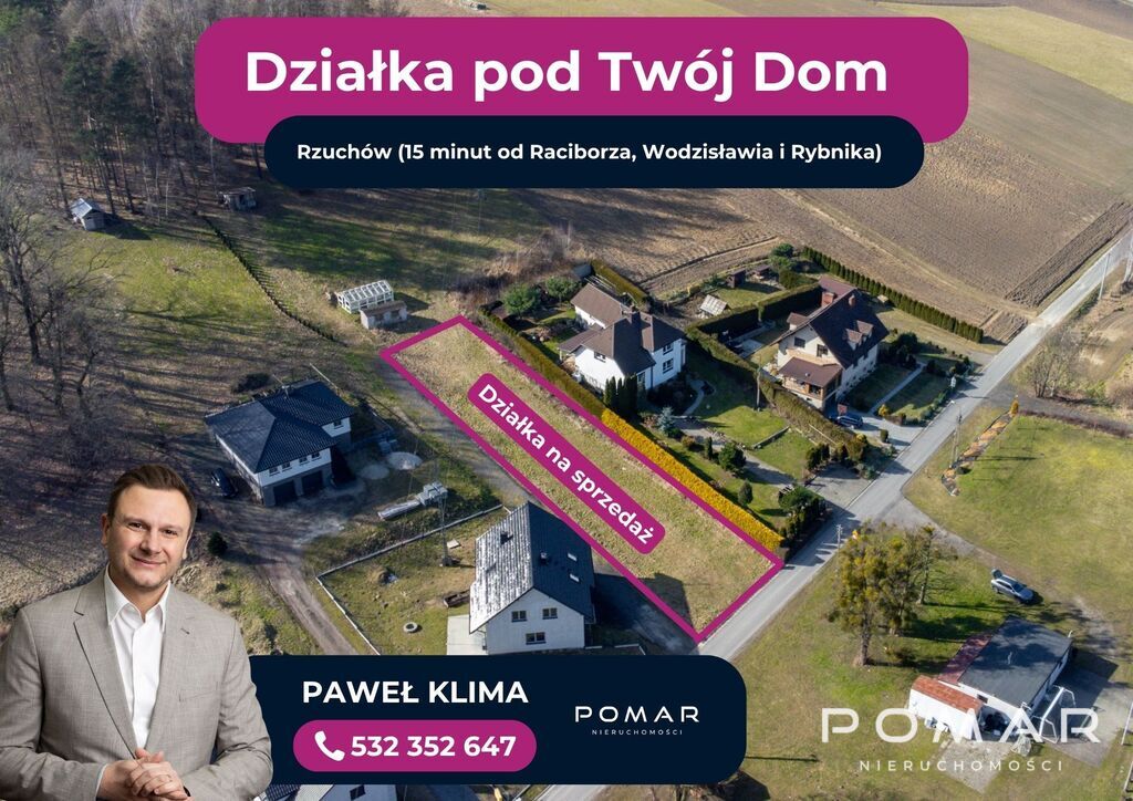 Wyobraź sobie poranki z widokiem na zieleń, śpiew ptaków zamiast miejskiego hałasu i przestrzeń, która naprawdę należy do Ciebie. Właśnie takie możliwości daje ta pięknie położona działka w Rzuchowie, w gminie Kornowac.