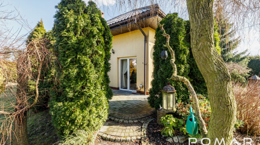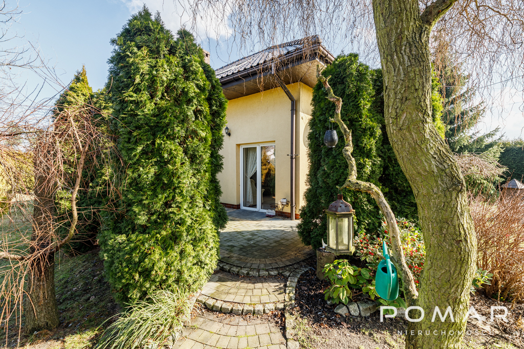 Na szczególne wyróżnienie zasługuje piękny, zadbany ogród, który tworzy idealną przestrzeń do odpoczynku po pracy, rodzinnych spotkań czy letnich wieczorów na tarasie.