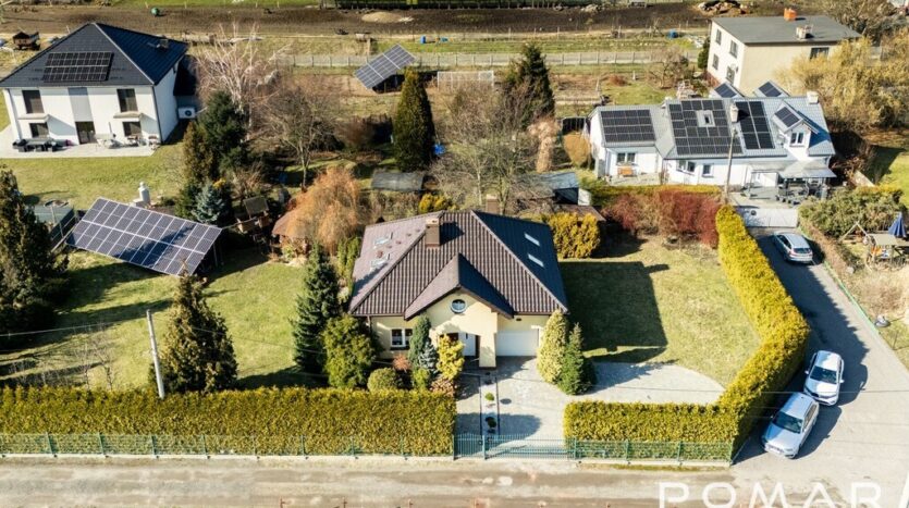 Już od pierwszych chwil nieruchomość robi ogromne wrażenie – zadbana bryła budynku, pięknie zagospodarowany ogród oraz nowoczesne rozwiązania energetyczne sprawiają, że jest to dom gotowy na przyszłość.